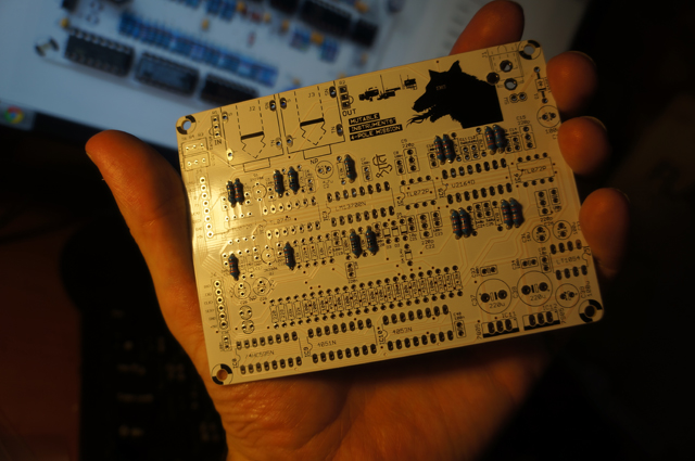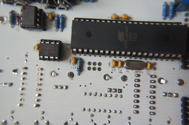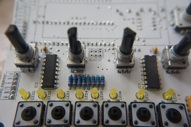 I’m enjoying the little Shruthi-1 synth so much, that I’ve decided to build a second unit. The new one has the 4-Pole Mission filter board and I’m looking forward to hearing how it differs from my current Shruthi-1. This time I opted to buy just the pcb’s (sexy in white!) and to source the components myself online – actually I had quite a bit of help, since I could grab the BOMs here. I’m just about finished with the build, but I’m waiting for this (PDF) to arrive so that I can program the chip. Fun times, if you’re into this kind of geekery. If you want a Shruthi-1, but don’t want to build one yourself, drop me a line – I’m sure we can work something out ;^) I’ll do a demo with the 4PM Shruthi-1 once I have it up and running. In the meantime, here are some pics from the build…